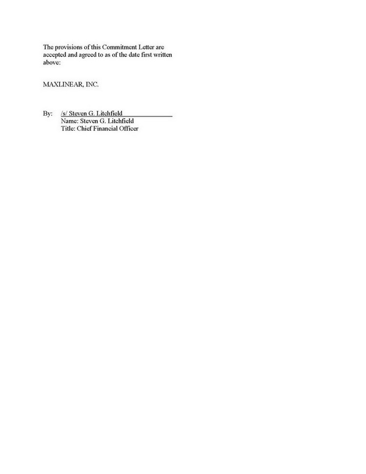 The provisions of this Commitment Letter are accepted and agreed to as of the date first written above:MAXLINEAR, INC.By: /s/ Steven G. Litchfield Name: Steven G. Litchfield Title: Chief Financial Officer