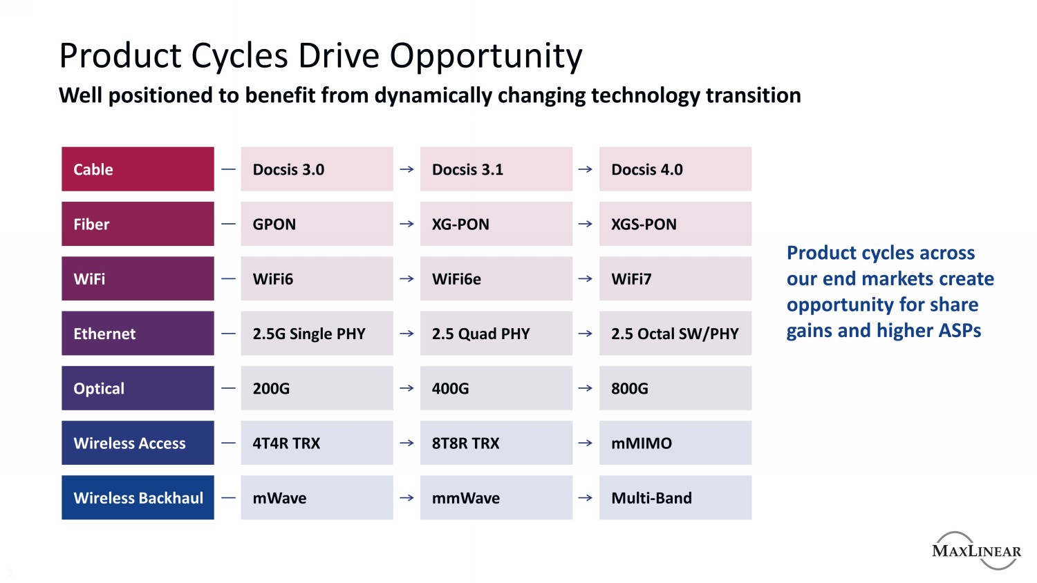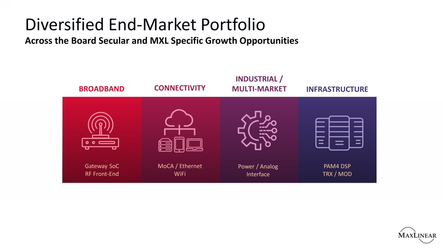 Diversified End - Market Portfolio Across the Board Secular and MXL Specific Growth Opportunities BROADBAND CONNECTIVITY INDUSTRIAL / MULTI - MARKET INFRASTRUCTURE Gateway SoC RF Front - End MoCA / Ethernet WiFi Power / Analog Interface PAM4 DSP TRX / MOD