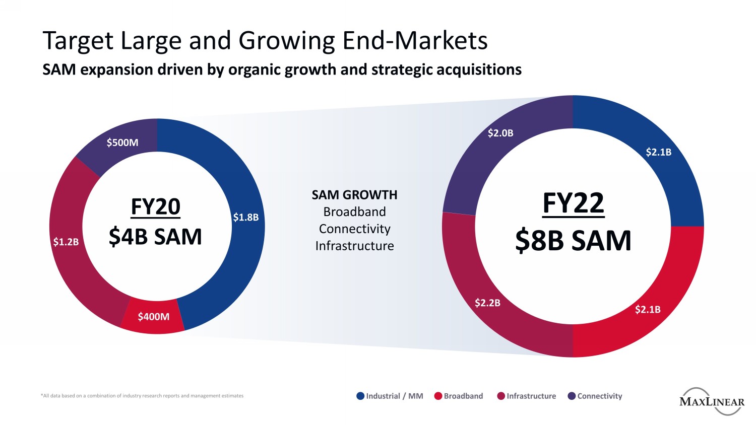 *All data based on a combination of industry research reports and management estimates Target Large and Growing End - Markets SAM expansion driven by organic growth and strategic acquisitions SAM GROWTH Broadband Connectivity Infrastructure FY20 $4B SAM $500M $1.8B $1.2B $400M FY22 $8B SAM $2.2B $2.0B $2.1B $2.1B Industrial / MM Broadband Infrastructure Connectivity
