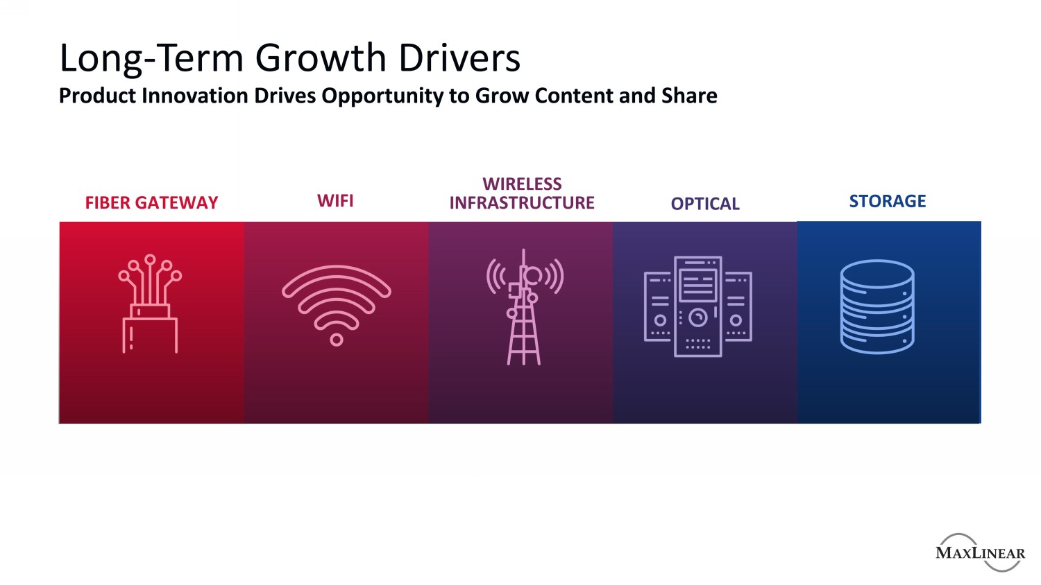 Long - Term Growth Drivers Product Innovation Drives Opportunity to Grow Content and Share FIBER GATEWAY WIFI WIRELESS INFRASTRUCTURE OPTICAL STORAGE