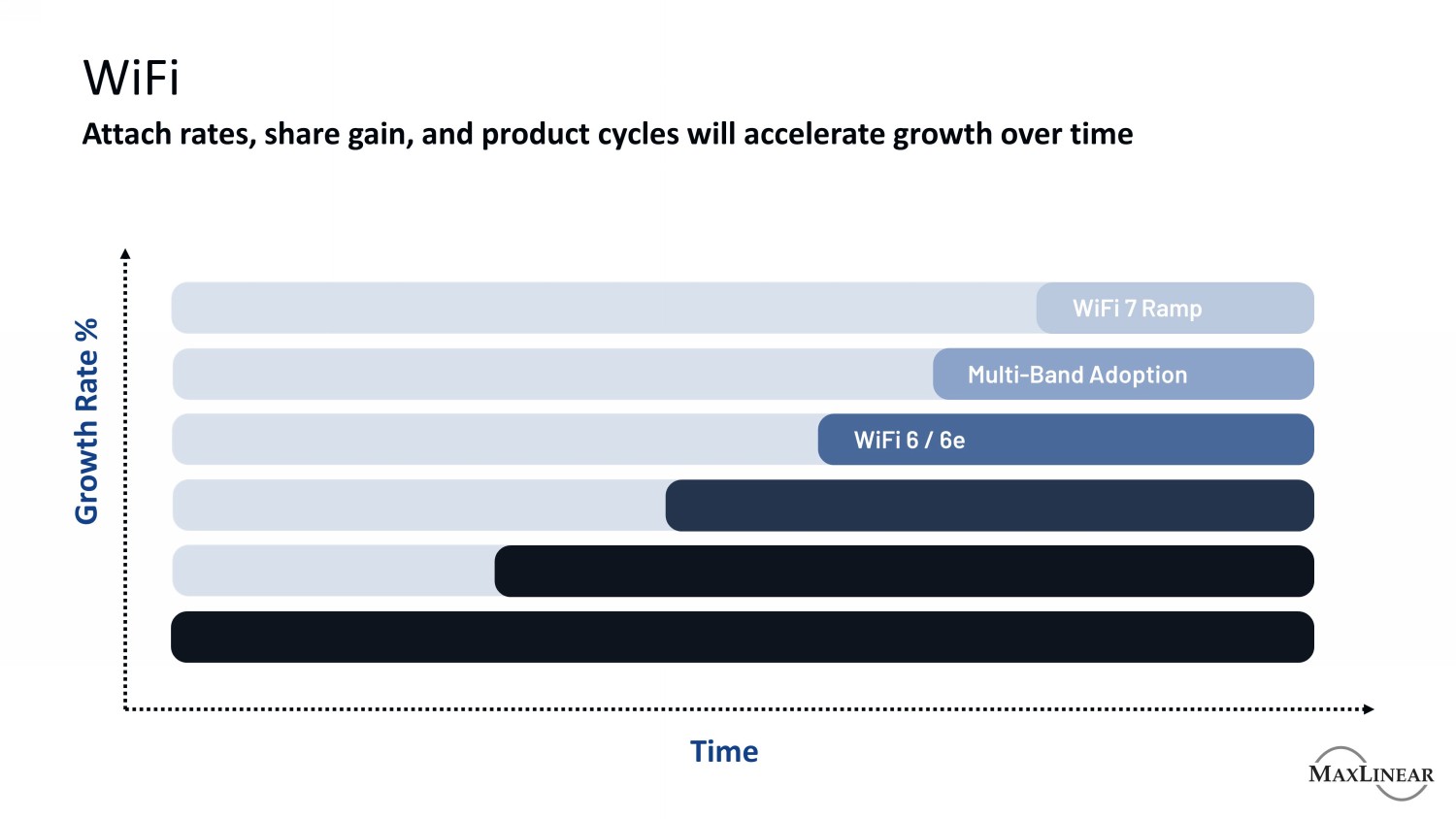 WiFi Attach rates, share gain, and product cycles will accelerate growth over time Growth Rate % Time WiFi 7 Ramp Multi - Band Adoption WiFi 6 / 6e